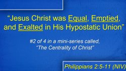 Jesus Christ was Equal, Emptied, and Exalted in His Hypostatic Union September 1, 2024 Pastor David Williamson The Centrality of Christ (4-week mini series) Philippians FBC Norway Audio Download https://www.fbcnorway.com/wp-content/uploads/2024/09/Week-2-of-4-Centrality-of-Christ_Phil-2_5-11.mp3 Save AudioSHARE ON Twitter Facebook Buffer LinkedIn Pin It Leave a Reply Cancel replyYour email address will not be published. Required fields are marked *Comment * Name * Email * Website Δ Continue Reading The Supremacy of Christ Over All Creation “JESUS – The God of Creation” (week 3 of 4 in a mini series called, “The Centrality of Christ”